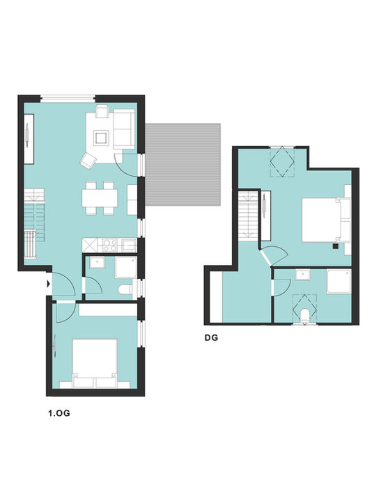 Unsere 3-Zimmer Maisonettewohnungen für Familien sind ca. 70 qm groß und gehen über zwei Etagen. Die Wohnungen sind im Obergeschoss mit einem großen Wohn-/Essbereich, einem Duschbad und einem Schlafzimmer ausgestattet. Im Dachgeschoss befindet sich ein weiteres Schlafzimmer und ein weiteres Badezimmer mit Dusche. Die beiden Etagen werden über eine Treppe im Wohnzimmer miteinander verbunden.